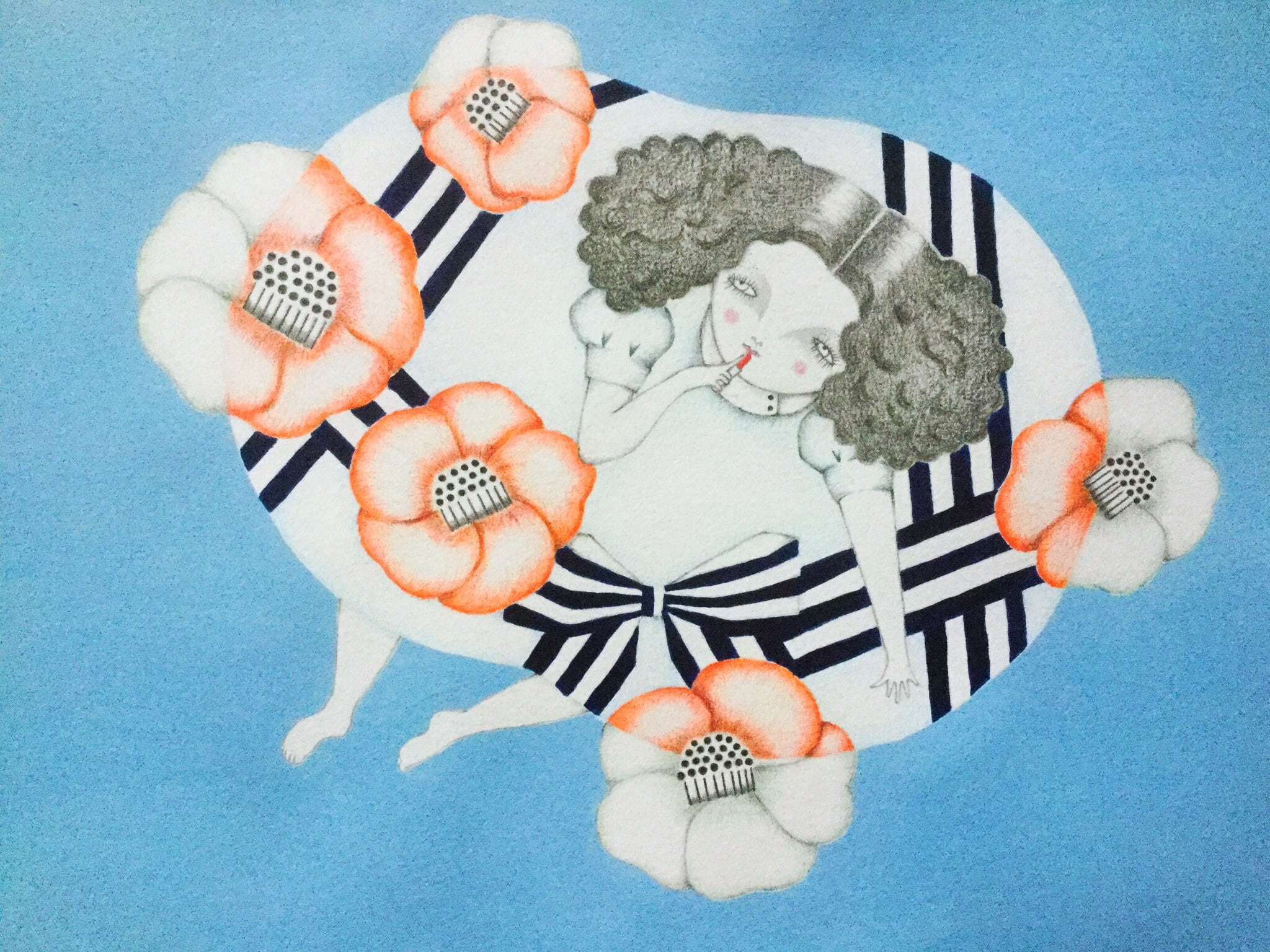 vt_tomomari さん作 絵画「椿とリボン」です。