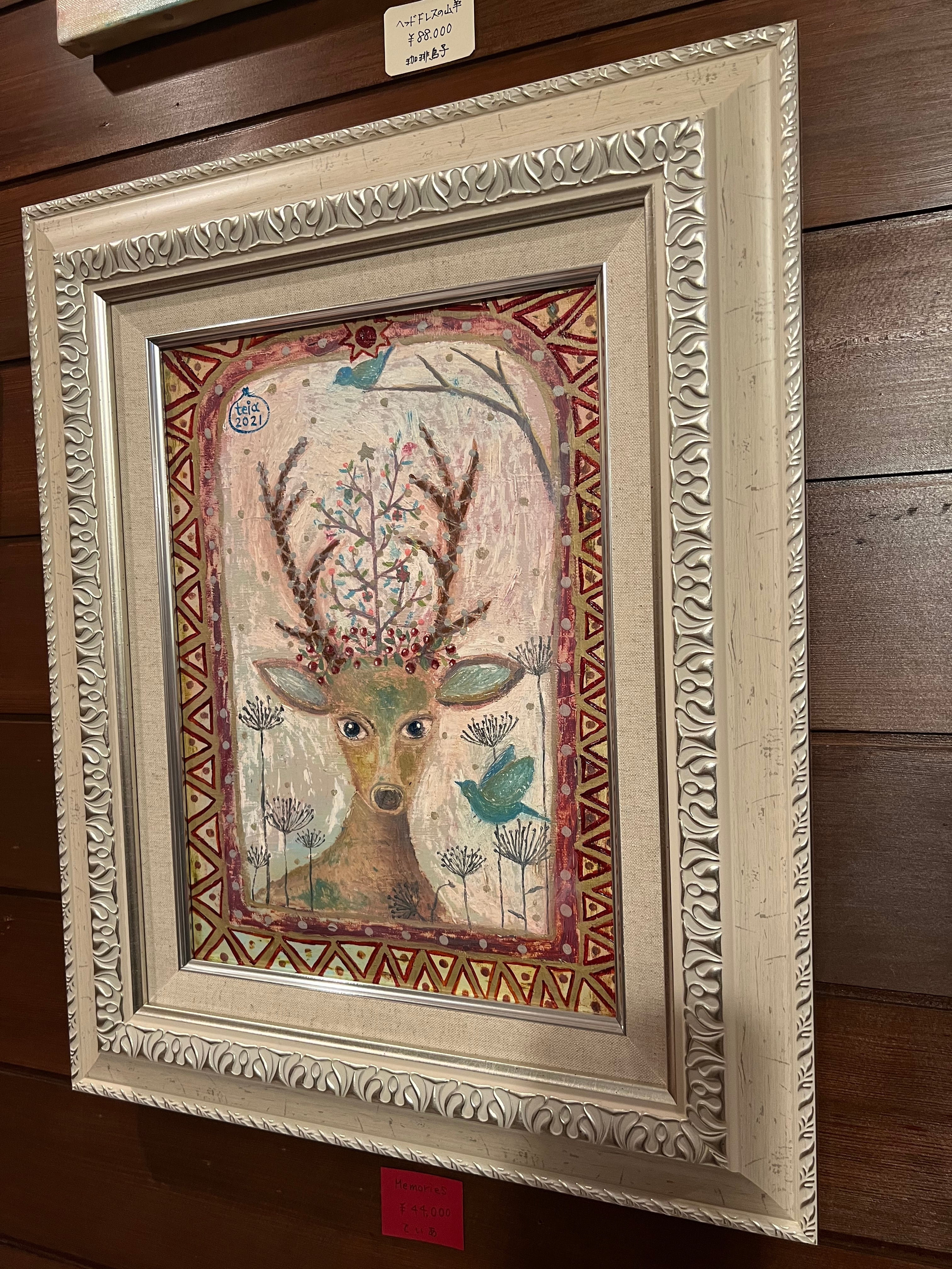 こちらを見据えてくる鹿の瞳が印象的な作品。